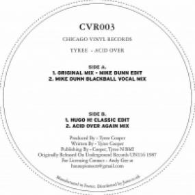 Classic cut "Acid Over" gets rereleased, along with new mixes!The 12" Starts Off with a new 2013 re edit from Mike Dunn, followed by the Hugo H! Classic edit. On the B side there's a fresh new rework of the classic, the Blackball Mix, and another rework from Tyree himself called " Acid Over Again".