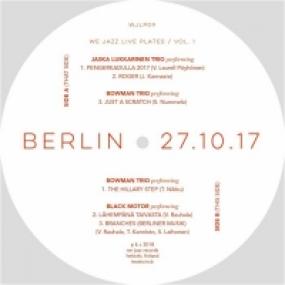 six-tracker featuring Black Motor, Bowman Trio and Jaska Lukkarinen Trio offering two potent slices of raw live jazz each.Helsinki's We Jazz Records launches a new series of live recordings, the "We Jazz Live Plates", offering a closer look into the label's live activities. The first installment of the series is a recording from Berlin captured in October 2017.